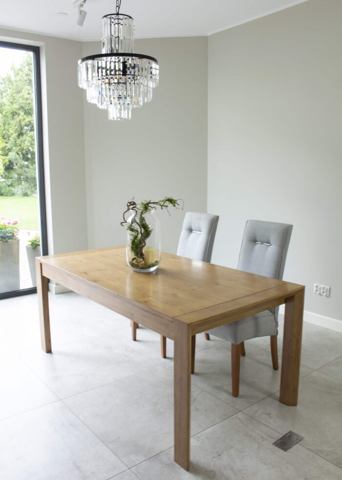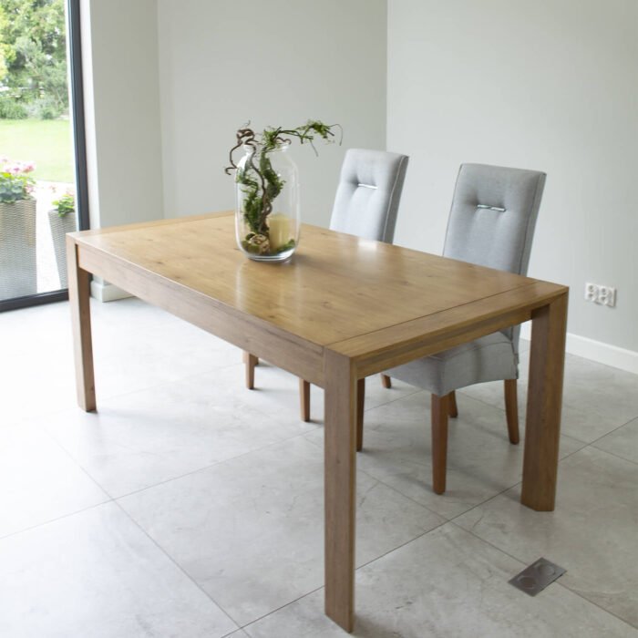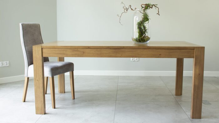 Drewniany stół z kolekcji Sagan w stylu loftowym. Stół Sagan, to przedstawiciel naturalnego piękna oraz dębowego drewna. Wykonany z dębowej okleiny stół zachwyca swoim solidny i stabilny wyglądem. Pożądane widoczne słoje oraz charakterystyczne dębowe nogi, nadają loftowego wyglądu. Stół w jasnym kolorze, może być również olejowany. Ponadto znakomicie wpisze się do wnętrz w stylu klasycznym jak i nowoczesnym. Niesamowita wytrzymałość stołu dzięki wysokiej jakości materiałów oraz technologi wykonania. Blat stołu w lakierze jest odporny na mikrozarysowania oraz ciepłe rzeczy i alkohol. Oferta jest elastyczna, każdy stół z naszej kolekcji może być wykonany na wymiar.