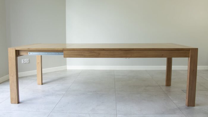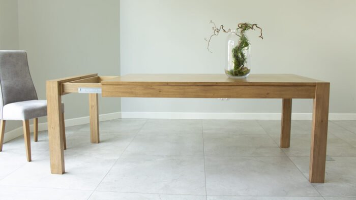 Nowoczesny stół dębowy w stylu loftowym do jadalni i salonu. Dębowy stół z rozkładaniem Kolekcji Sagan to idealne rozwiązanie dla osób, które tylko od czasu do czasu potrzebują stołu okazyjnego na większa liczbę osób np.:stół na 12 osób i więcej. Stół w wersji dębowej fornirowanej oraz jako stół lity dębowy.