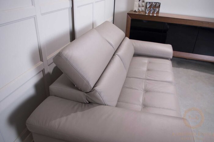 Skórzana sofa Italiano z regulowanymi zagłówkami. Sofa o bardzo wygodnym z uwagi na swoją głębokość oraz sprężyny bonelowe. Dzięki sprężynom bonelowym, siedziska są trwalsze i wygodniejsze. Regulowane zagłówki, dają wiele zalet: w dowolny sposób możemy je odchylić, możemy również całkowicie je położyć. Takie rozwiązanie świetnie sprawdzi się w otwartym salonie z kuchnią. W momencie gdy z kuchni chcemy zerkać na ekran telewizora lub widok za oknem. Stelaż sofy wykonany z drewna jak i płyty mdf oraz wypełnienie stanowią wysoko elastyczne pianki.