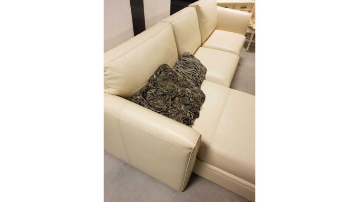 Narożnik Dubaj- skórzany narożnik z wysokim oparciem oraz poduchami- Narożnik lewostronny krem